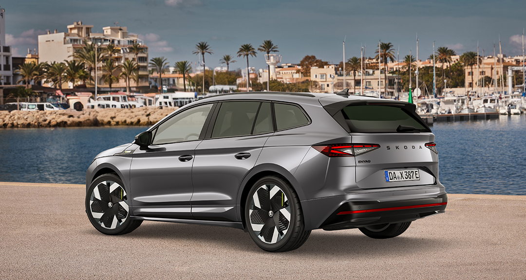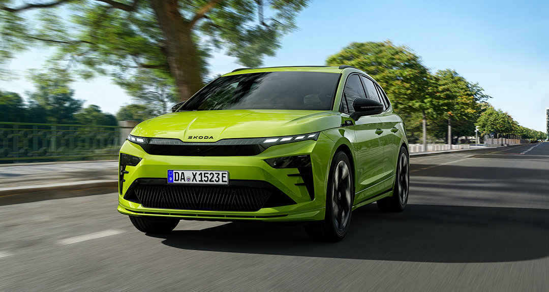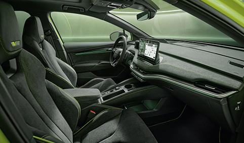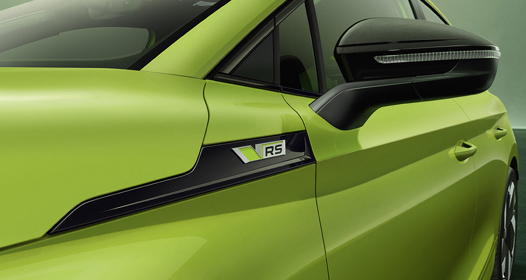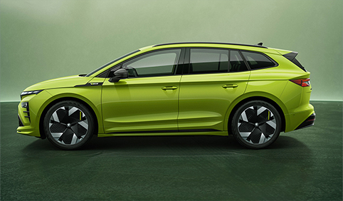 The Enyaq RS’s front makes a powerful statement, expressing Škoda’s Modern Solid design language through its high-gloss black Tech-Deck Face, which seamlessly integrates sensors and a striking Light Band in the form of a vertical light grille. The Matrix LED headlights with their four-eyed look underscore the unmistakable identity of the Škoda SUV model range and feature a Coming/Leaving Home animation. The RS-specific bumper and black bonnet lettering complete the sporty, confident look. The Elroq comes with the fresh new Modern Solid design language. It’s functional, minimal, and clean, while retaining the distinctive design features that are Škoda hallmarks. As a result, the Elroq exudes authenticity and robustness.
